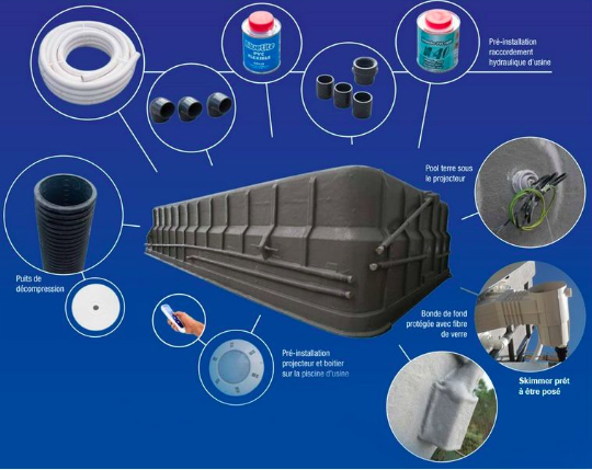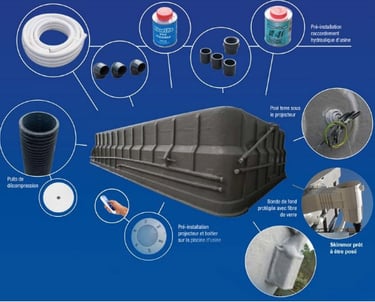 plomberie pré-montées pour un gain de temps.installez vous meme votre piscine en 24H